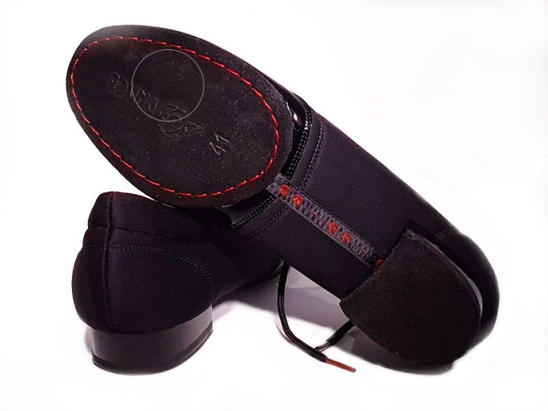 Мягкая черная обувь для бальных танцев из SPANDEX + PATENT Leather. Верх и подошва из натуральной кожи. Подкладка текстильная. Очень удобные. Прилогается текстильный мешок.